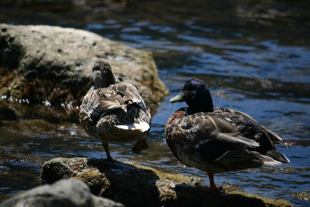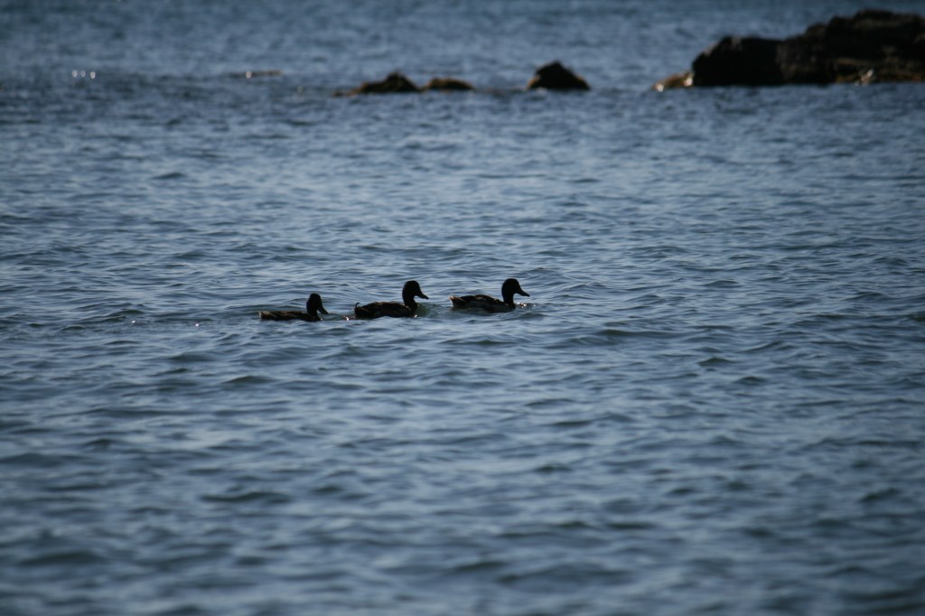 Biraz vasat bir işletme olan kafe lokanta arası sahildeki tek mekanda birer gözleme yiyerek telefonlarımızın şarj olmasını beklerken, kimi suların üzerinde yüzen kimi kayalarda güneşe sen mi büyüksün ben mi büyüğüm pozları veren ördekleri izliyorduk.