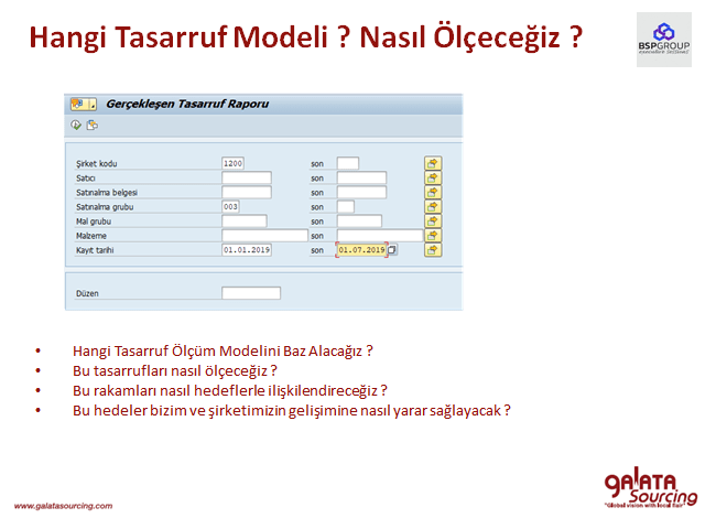 Tasarruf önemli bir olgu, hedef , performans göstergesi, terfi sebebi ya da ötesi ama burada çok önemli bir sorunsal var o da kime göre tasarruf kime göre tasarruf değil , ne kadar tasarruf , nasıl ölçeceğiz neyi referans alacağız. Bunun üzerinde her işletme her yönetici her çalışan kafa yormalı ve kendilerine özgü bir model belirleyip onun üzerinde antat kalmalıdır. Yoksa satınalma tasarruf değer, CFO zam değer, patron cebimden çıkan paradan tasarruf mu olur der der de der. Biz burada 10 farklı senaryo belirledik ve bu senaryoları SAP ile entegre ettik. Her satınalma siparişi oluşturulurken satın alma fiyatı ve varsa referans fiyatı yazılıyor ikisi arasındaki farkı sistem miktar ile çarparak tasarruf tutarını hesaplıyor. Sonra hangi modele göre ne kadar tasarruf yapılmış sistemsel olarak görülebiliyor. Şeffaf manipilasyondan sıyrılmış, raporlanabilir bir sistem.