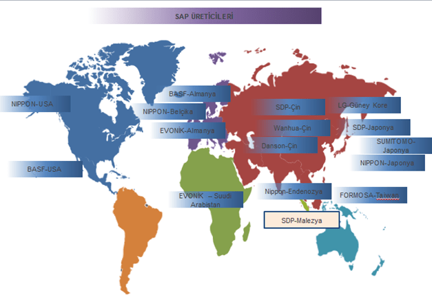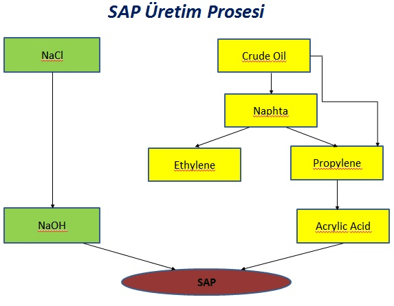 SAP (Super Absorbent Polymer ) ; Ana performans sağlayıcı diyebiliriz, hem miktarı hem de kalitesi, sıvıyı ne kadar hızlı emdiği, ne ölçüde içinde hapsettiği bezin kalitesini belirler. Maalesef petrokimya türevi olduğu için ülkemizde üretilememektedir. Kabaca Acrilik asid ve kostik sodanın birer reaksiyonudur diyelim. Yurt dışına bağımlı olduğumuz USD ile aldığımız ve TL nin değer kaybettiğinde bize zam olarak dönen yüz binlerce örnekten birisidir. Nippon, BASF,Evonik, LG, Formosa gibi kimya devleri üretimini yapmaktadır. Ülkemizin en zayıf olduğu alanlardan biridir, bu tür ham maddeleri kendi içimizde karşılayabilmemiz için herhalde 10 tane daha Petkim’e ihtiyaç duymaktayız desek yerinde olur.