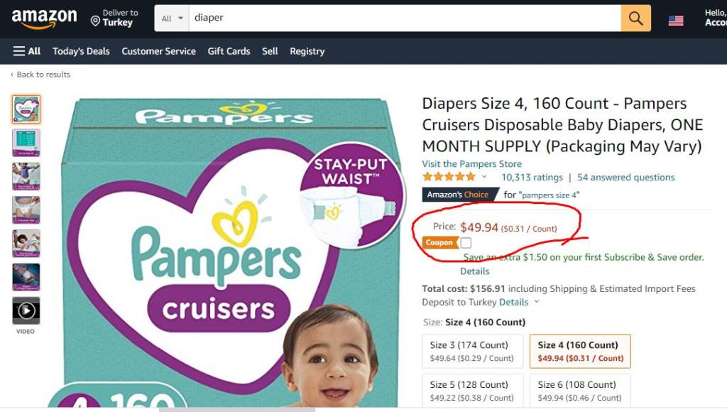 Önemli NOT: Mümkün mertebe elma elam kıyaslama olması açısından, tüm ülkelerdeki mümkünse amazonda yer alan Pampers marka, 4 numaralı bebek bezi referans alınmaya çalışılmıştır.